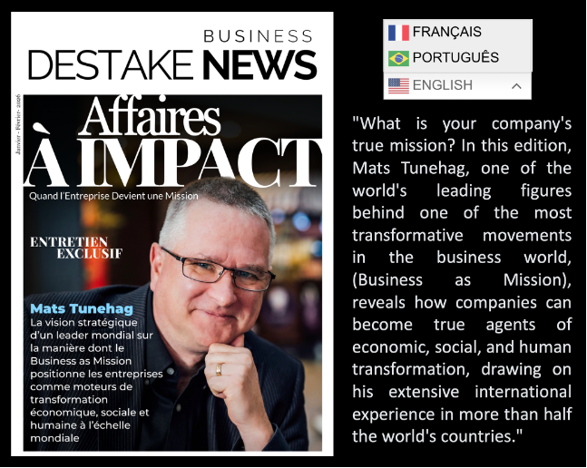 Business as Mission featured in an international business magazine; in three languages.
